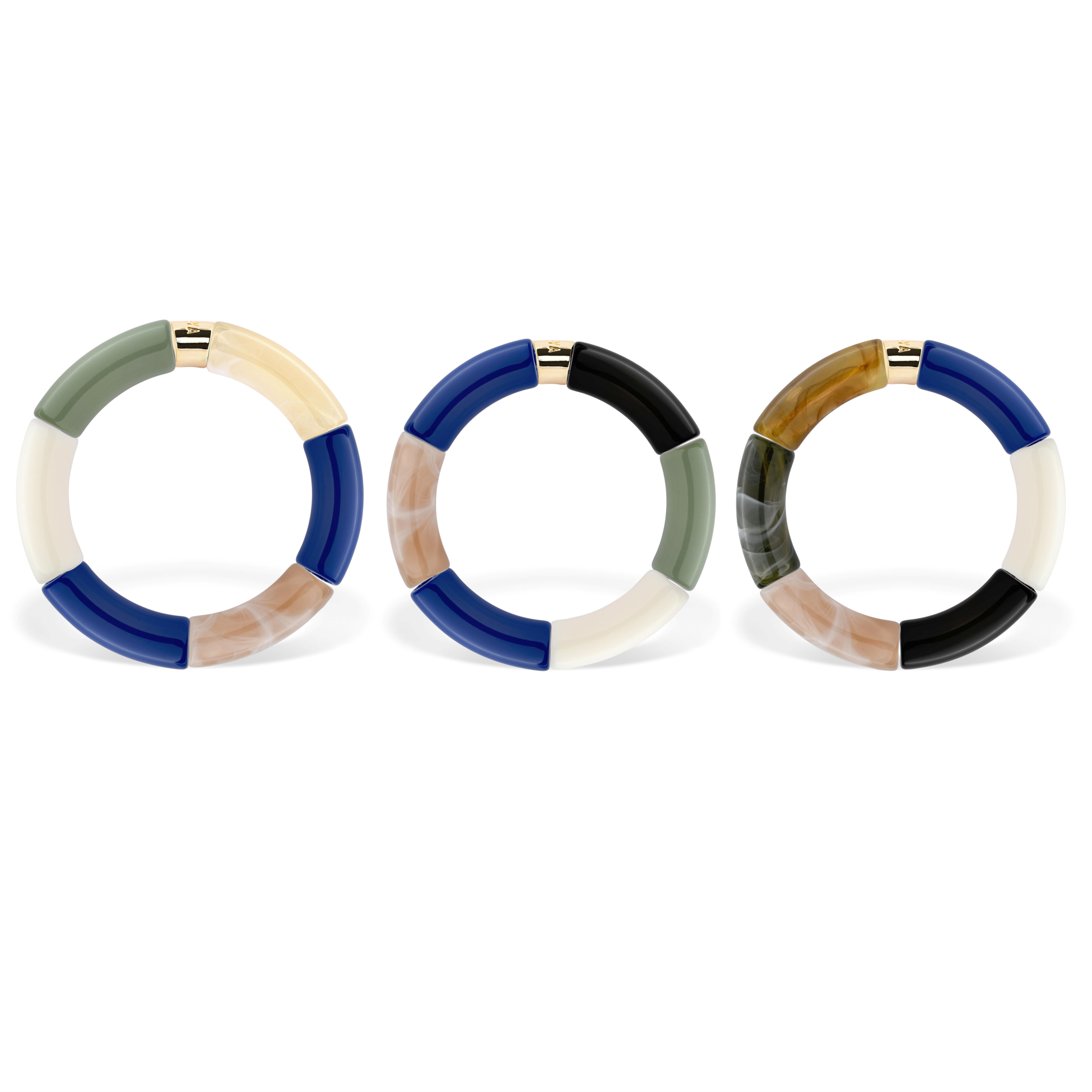 The trios are designed according to a carefully crafted assembly of colors, and the combination of the 3 bracelets highlights each of the bracelets that make up the set.