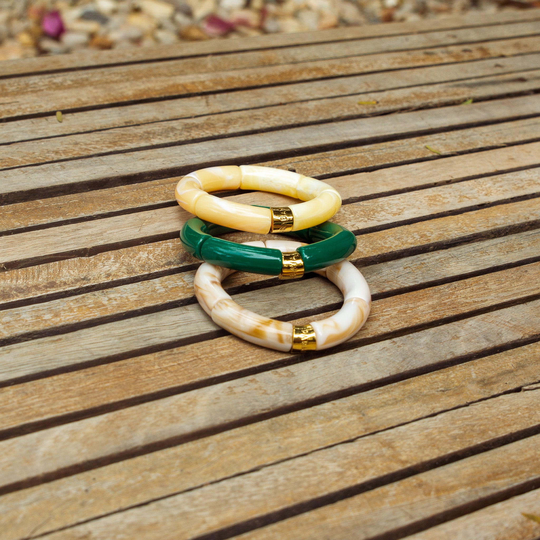 The trios are designed according to a carefully crafted assembly of colors, and the combination of the 3 bracelets highlights each of the bracelets that make up the set.