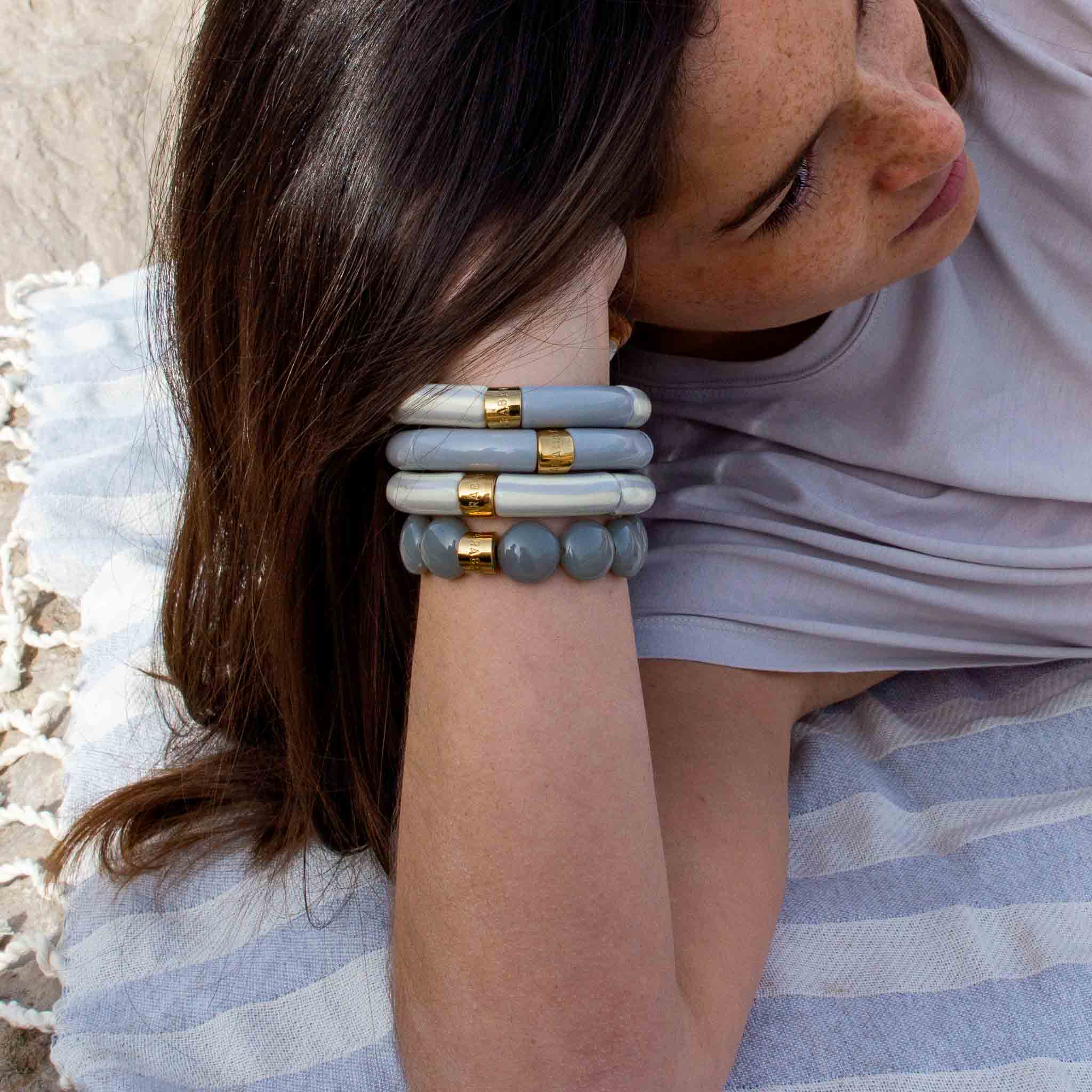 The trios are designed according to a carefully crafted assembly of colors, and the combination of the 3 bracelets highlights each of the bracelets that make up the set.