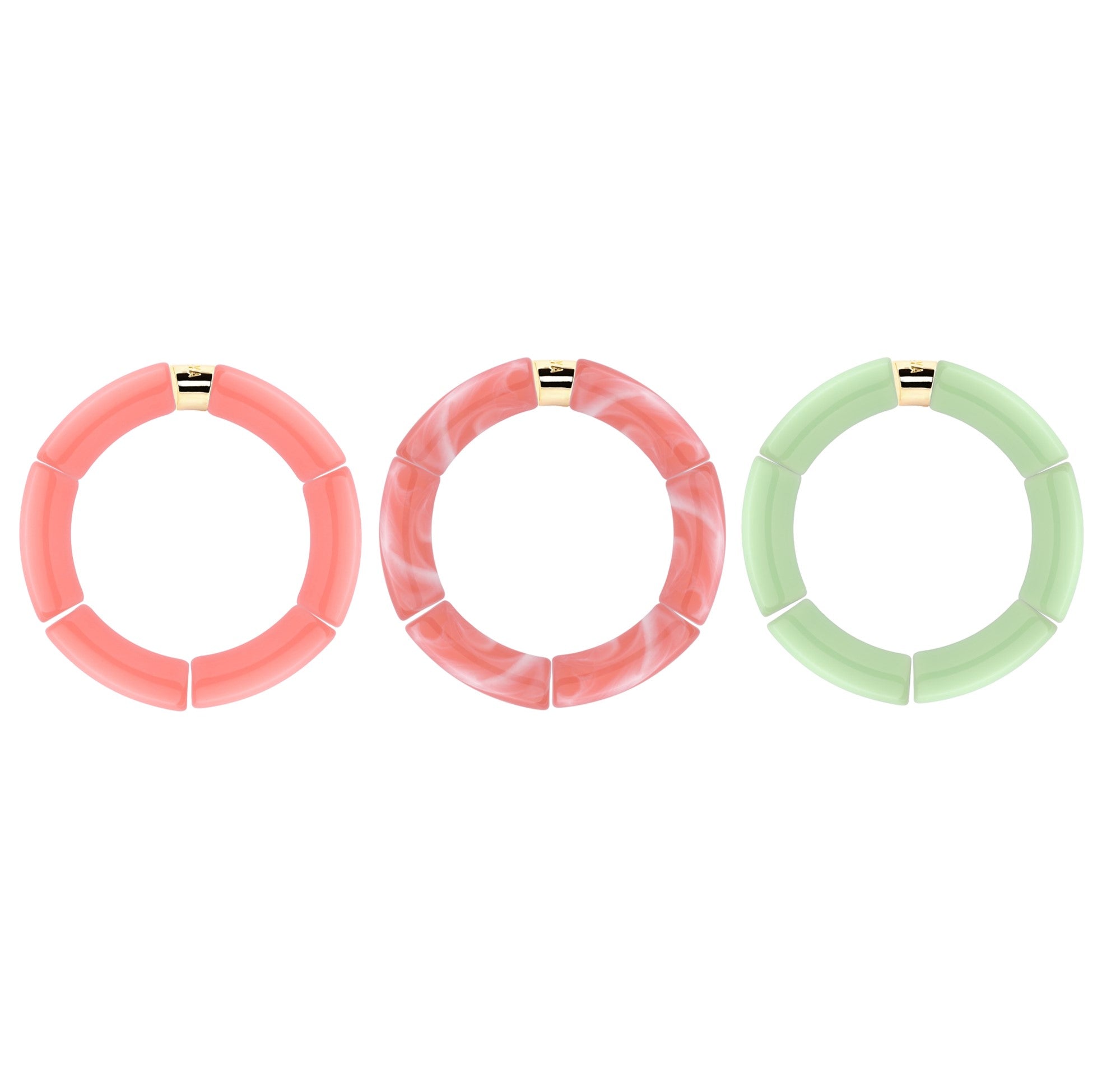 The trios are designed according to a carefully crafted assembly of colors, and the combination of the 3 bracelets highlights each of the bracelets that make up the set.