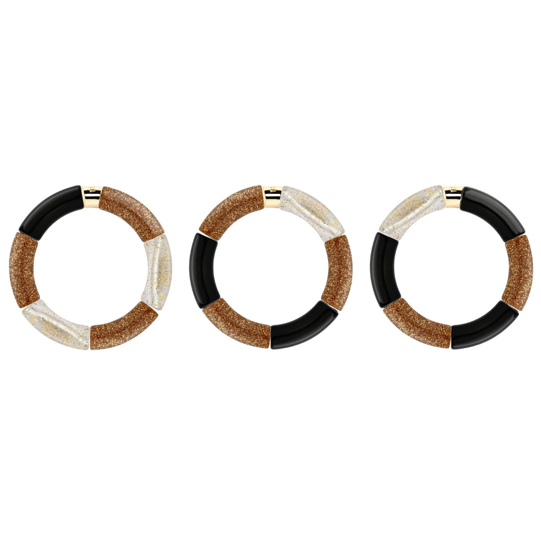 Les trios sont pensés selon un assemblage de couleurs travaillé, et la combinaison des 3 bracelets mis en valeur chacun des bracelets qui composent l'ensemble.