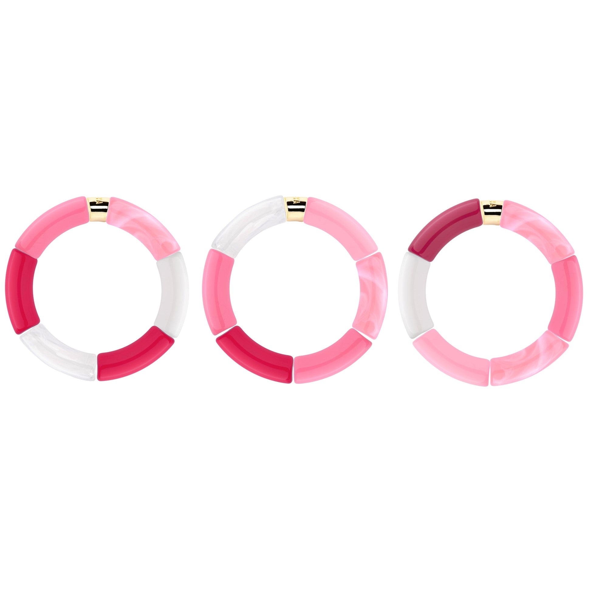 Les trios sont pensés selon un assemblage de couleurs travaillé, et la combinaison des 3 bracelets mis en valeur chacun des bracelets qui composent l'ensemble.