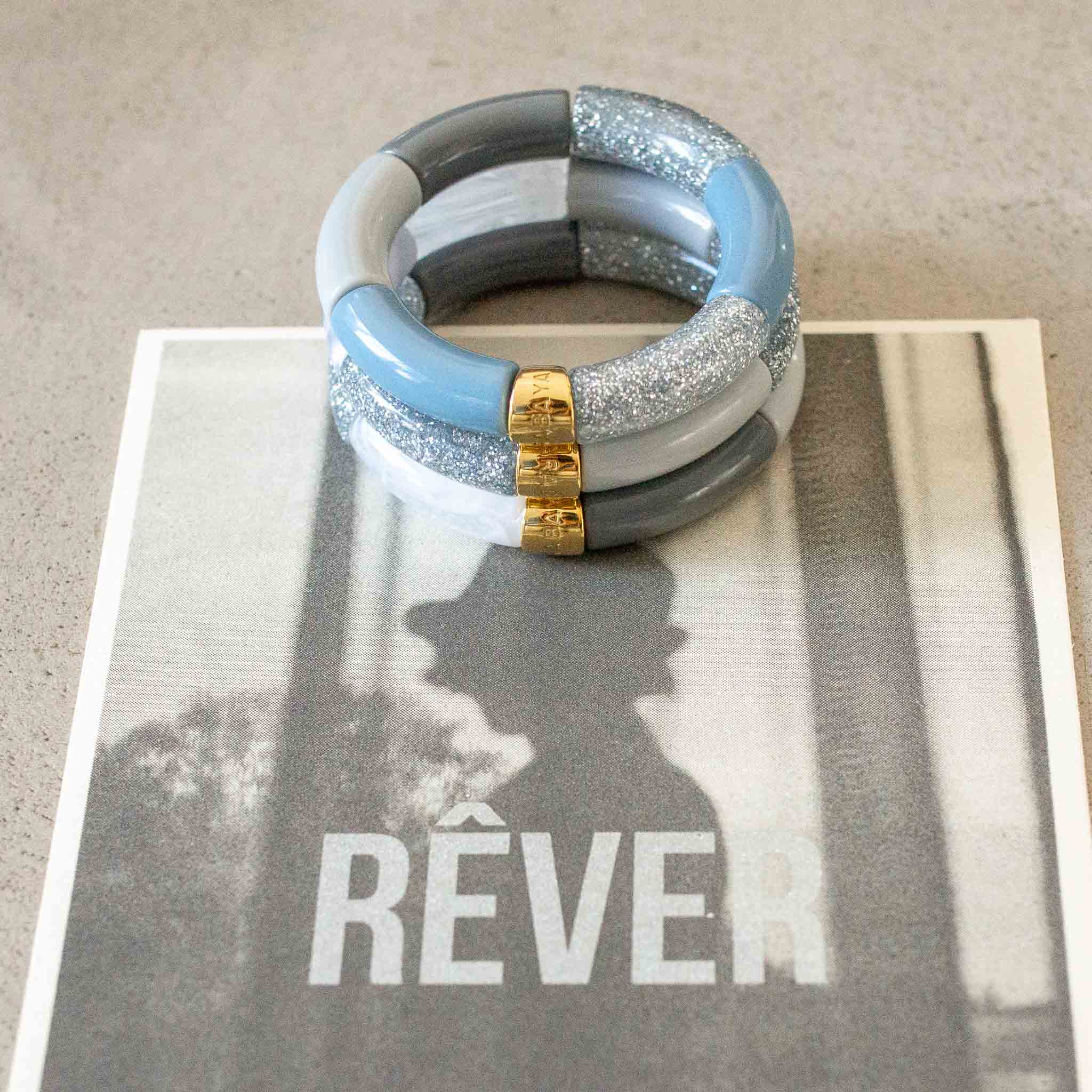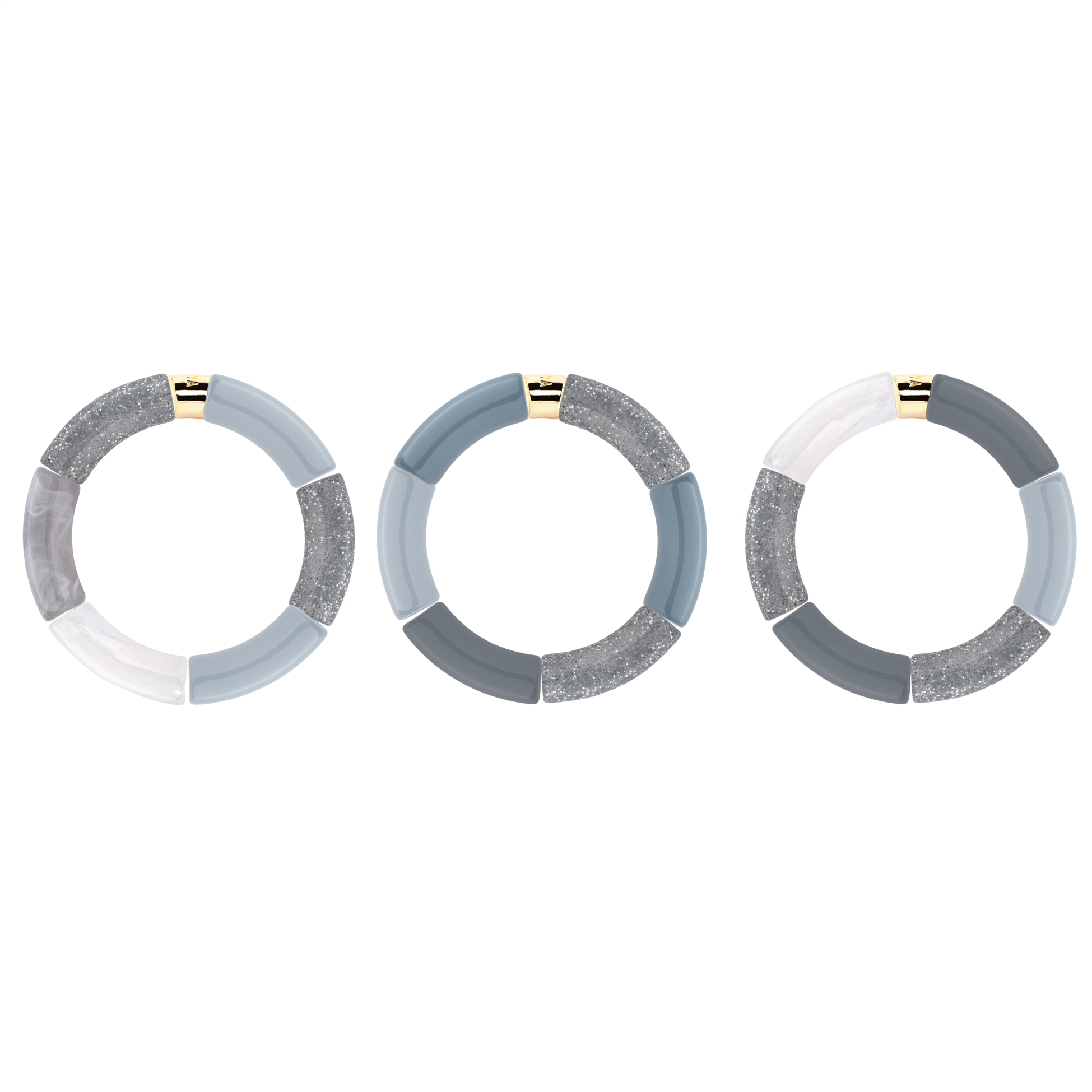 Les trios sont pensés selon un assemblage de couleurs travaillé, et la combinaison des 3 bracelets mis en valeur chacun des bracelets qui composent l'ensemble.