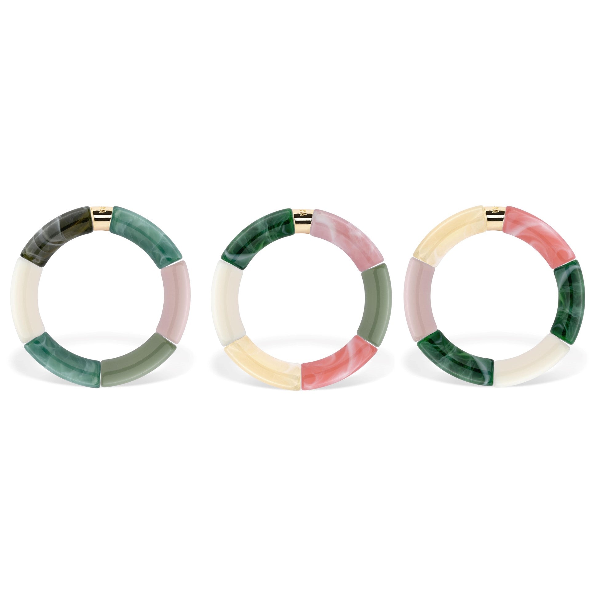 Les trios sont pensés selon un assemblage de couleurs travaillé, et la combinaison des 3 bracelets mis en valeur chacun des bracelets qui composent l'ensemble.